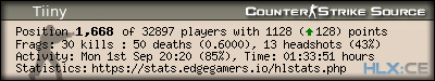 Rank | Map | Kills | % | Ratio | Deaths | % | Ratio | K:D | Headshots | % | Ratio | HS:K |