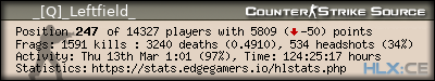 | Rank | Server | Kills | % | Ratio | Deaths | K:D | Headshots | Percentage of Headshots | % | HS:K |