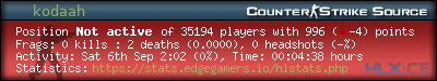 Rank | Map | Kills | % | Ratio | Deaths | % | Ratio | K:D | Headshots | % | Ratio | HS:K |