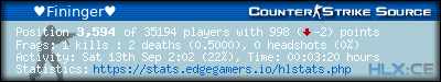 Rank | Map | Kills | % | Ratio | Deaths | % | Ratio | K:D | Headshots | % | Ratio | HS:K |