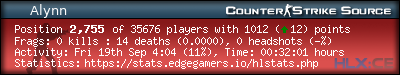 Rank | Map | Kills | % | Ratio | Deaths | % | Ratio | K:D | Headshots | % | Ratio | HS:K |