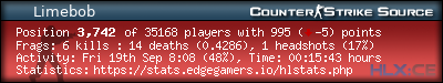 Rank | Map | Kills | % | Ratio | Deaths | % | Ratio | K:D | Headshots | % | Ratio | HS:K |