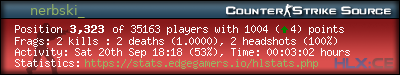 Rank | Map | Kills | % | Ratio | Deaths | % | Ratio | K:D | Headshots | % | Ratio | HS:K |