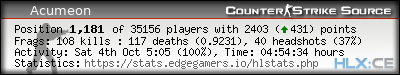 1 | =(eGO)= | DUST2 | NO AWPS/AUTOS | EdgeGamers.com | 108 | 100.00% | 117 | 0.9231 | 40 | 100.00% | 0.3704 |
