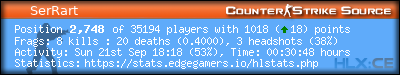 Rank | Map | Kills | % | Ratio | Deaths | % | Ratio | K:D | Headshots | % | Ratio | HS:K |