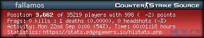 Rank | Map | Kills | % | Ratio | Deaths | % | Ratio | K:D | Headshots | % | Ratio | HS:K |