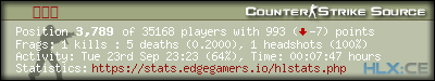 Rank | Map | Kills | % | Ratio | Deaths | % | Ratio | K:D | Headshots | % | Ratio | HS:K |