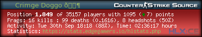 Rank | Map | Kills | % | Ratio | Deaths | % | Ratio | K:D | Headshots | % | Ratio | HS:K |