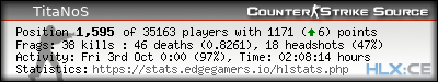 1 | de_dust2 | 38 | 100.00% | 46 | 100.00% | 0.83 | 18 | 100.00% | 0.47 |