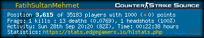 Rank | Map | Kills | % | Ratio | Deaths | % | Ratio | K:D | Headshots | % | Ratio | HS:K |