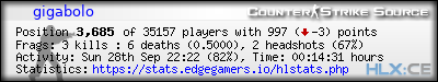 Rank | Map | Kills | % | Ratio | Deaths | % | Ratio | K:D | Headshots | % | Ratio | HS:K |