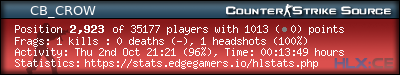 Rank | Map | Kills | % | Ratio | Deaths | % | Ratio | K:D | Headshots | % | Ratio | HS:K |