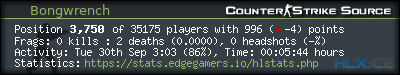 Rank | Map | Kills | % | Ratio | Deaths | % | Ratio | K:D | Headshots | % | Ratio | HS:K |