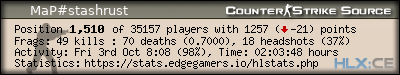 Rank | Map | Kills | % | Ratio | Deaths | % | Ratio | K:D | Headshots | % | Ratio | HS:K |