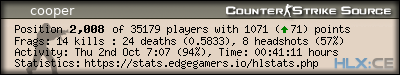 1 | de_dust2 | 14 | 100.00% | 24 | 100.00% | 0.58 | 8 | 100.00% | 0.57 |