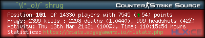 | Rank | Server | Kills | % | Ratio | Deaths | K:D | Headshots | Percentage of Headshots | % | HS:K |