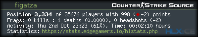 Rank | Map | Kills | % | Ratio | Deaths | % | Ratio | K:D | Headshots | % | Ratio | HS:K |