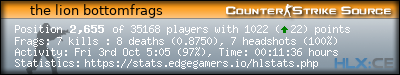 Rank | Map | Kills | % | Ratio | Deaths | % | Ratio | K:D | Headshots | % | Ratio | HS:K |