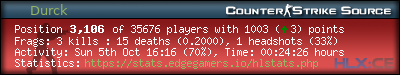 Rank | Map | Kills | % | Ratio | Deaths | % | Ratio | K:D | Headshots | % | Ratio | HS:K |