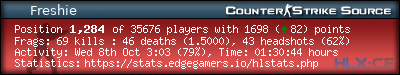 Rank | Server | Kills | % | Ratio | Deaths | K:D | Headshots | Percentage of Headshots | % | HS:K |