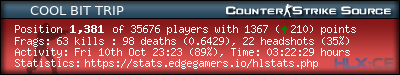 1 | =(eGO)= | DUST2 | NO AWPS/AUTOS | EdgeGamers.com | 63 | 100.00% | 98 | 0.6429 | 22 | 100.00% | 0.3492 |