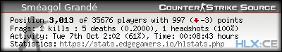Rank | Map | Kills | % | Ratio | Deaths | % | Ratio | K:D | Headshots | % | Ratio | HS:K |