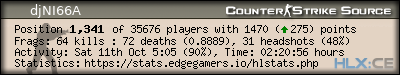 1 | =(eGO)= | DUST2 | NO AWPS/AUTOS | EdgeGamers.com | 64 | 100.00% | 72 | 0.8889 | 31 | 100.00% | 0.4844 |