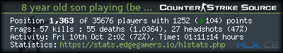 Rank | Server | Kills | % | Ratio | Deaths | K:D | Headshots | Percentage of Headshots | % | HS:K |