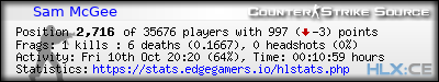 Rank | Map | Kills | % | Ratio | Deaths | % | Ratio | K:D | Headshots | % | Ratio | HS:K |