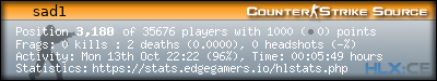 Rank | Map | Kills | % | Ratio | Deaths | % | Ratio | K:D | Headshots | % | Ratio | HS:K |