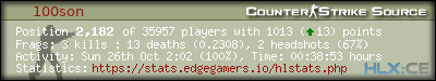 | 1 | de_dust2 | 3 | 100.00% | 13 | 100.00% | 0.23 | 2 | 100.00% | 0.67 |