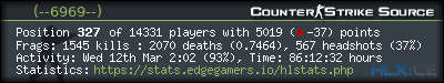 | Rank | Server | Kills | % | Ratio | Deaths | K:D | Headshots | Percentage of Headshots | % | HS:K |