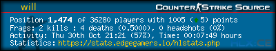 | Favorite Server:* | =(eGO)= | DUST2 | NO AWPS/AUTOS | EdgeGamers.com |