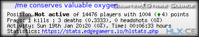 Rank | Name | Time | Last Use | Kills | Deaths | K:D | Headshots | HS:K | Suicides | Accuracy |