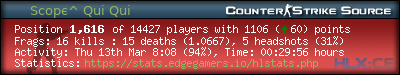 Rank | Map | Kills | % | Ratio | Deaths | % | Ratio | K:D | Headshots | % | Ratio | HS:K |