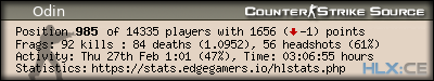 Rank | Map | Kills | % | Ratio | Deaths | % | Ratio | K:D | Headshots | % | Ratio | HS:K |