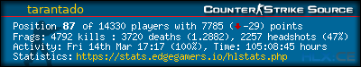 | Rank | Server | Kills | % | Ratio | Deaths | K:D | Headshots | Percentage of Headshots | % | HS:K |