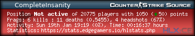 Rank | Map | Kills | % | Ratio | Deaths | % | Ratio | K:D | Headshots | % | Ratio | HS:K |