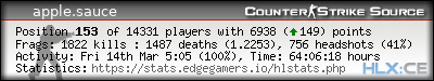 | 1 | =(eGO)= | DUST2 | NO AWPS/AUTOS | EdgeGamers.com | 571 | 100.00% | 463 | 1.2333 | 219 | 100.00% | 0.3835 |