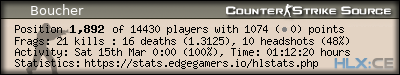 | Rank | Name | Time | Last Use | Kills | Deaths | K:D | Headshots | HS:K | Suicides | Accuracy |