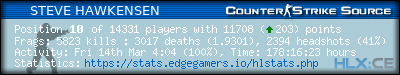 | Rank | Name | Time | Last Use | Kills | Deaths | K:D | Headshots | HS:K | Suicides | Accuracy |