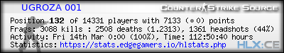 | Rank | Server | Kills | % | Ratio | Deaths | K:D | Headshots | Percentage of Headshots | % | HS:K |