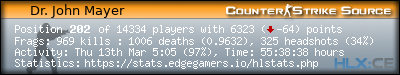 Rank | Server | Kills | % | Ratio | Deaths | K:D | Headshots | Percentage of Headshots | % | HS:K |