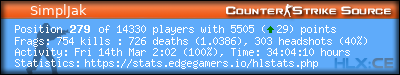 | 1 | =(eGO)= | DUST2 | NO AWPS/AUTOS | EdgeGamers.com | 328 | 100.00% | 301 | 1.0897 | 174 | 100.00% | 0.5305 |