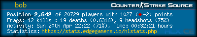 | Rank | Name | Time | Last Use | Kills | Deaths | K:D | Headshots | HS:K | Suicides | Accuracy |