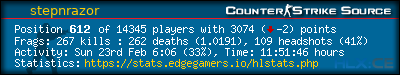 | Favorite Server:* | =(eGO)= | DUST2 | NO AWPS/AUTOS | EdgeGamers.com |