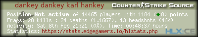 Rank | Map | Kills | % | Ratio | Deaths | % | Ratio | K:D | Headshots | % | Ratio | HS:K |