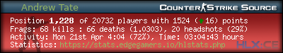 | 1 | =(eGO)= | DUST2 | NO AWPS/AUTOS | EdgeGamers.com | 236 | 100.00% | 250 | 0.9440 | 73 | 100.00% | 0.3093 |