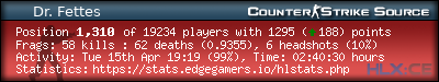 1 | =(eGO)= | DUST2 | NO AWPS/AUTOS | EdgeGamers.com | 67 | 100.00% | 56 | 1.1964 | 27 | 100.00% | 0.4030 |