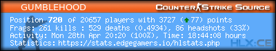 | Rank | Server | Kills | % | Ratio | Deaths | K:D | Headshots | Percentage of Headshots | % | HS:K |
